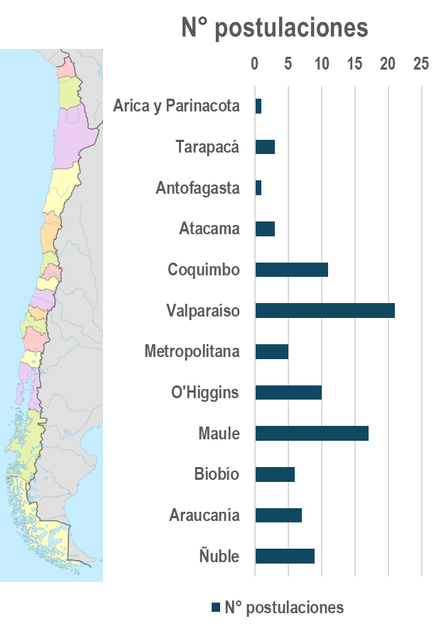 El monto solicitado este año fue de $435 millones de pesos, superior a los $133 millones disponibles.  Los proyectos se presentaron desde Arica hasta Araucanía, se concentraron en las regiones de Valparaíso y Maule.